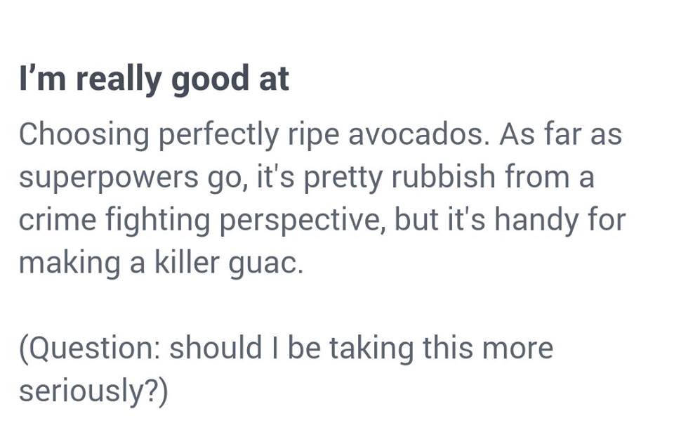 So for my own amusement, I changed my ‘I’m really good at’ section to this: